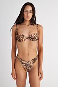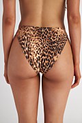 Leopard printed low rise bikini brief with wide waistband in hipster style. Moderate back coverage. Combine it with its bikini top 25801699 for a total look.
