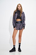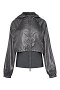 Monochrome, asymmetric jacket made of lightweight fabric, perfect for a stylish look. Features a hood with an elastic drawstring and stopper to help it stay in place and fit snugly on the head. Long sleeves with elasticated cuffs. Front zipper closure. Relaxed fit. Combine it with the sport shorts 24860100 for a complete, chic look. This combination offers the perfect blend of fashion and comfort, ensuring you make a statement wherever you go! Model wears size S: Height: 1,81cm, Bust: 88cm, Waist: 62cm, Hips: 91cm.