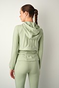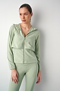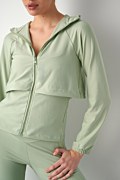Monochrome, asymmetric jacket made of lightweight fabric, perfect for a stylish look. Features a hood with an elastic drawstring and stopper to help it stay in place and fit snugly on the head. Long sleeves with elasticated cuffs. Front zipper closure. Relaxed fit. Combine it with the leggings 25845028 for a complete, chic look. This combination offers the perfect blend of fashion and comfort, ensuring you make a statement wherever you go! Model wears size S: Height: 1,76cm, Bust: 85cm, Waist: 61cm, Hips: 91cm.
