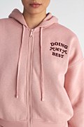 The Basic Sugarfree Cotton Collection encapsules the all-time-classic leisurewear pieces that every wardrobe needs! Soft, comfortable, long sleeved jacket is made from pure cotton with inner soft fleece fabric, contrasting embroidered text detail on the chest, front side pockets, double hoodie with an adjustable drawstring and ribbed elastic bands at the waist and cuffs. Front zipper closure. Regular fit. Combine it with the pants 25831039 for a perfect look. Suitable from day to night. Model wears size S: Height: 1,78cm, Bust: 80cm, Waist: 62cm, Hips: 91cm.