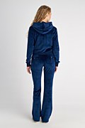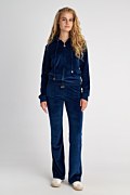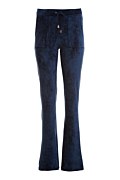 Comfort with style for you with the new super soft shiny velour fabric by Sugarfree! Basic super soft velour pants in low rise and slightly flared fit. Patch pockets on the front, snap-flap pockets on back, long lenght and banded drawstring waist. Logo details at the front drawstring. Combine it with the basic jacket 23833030 for a perfect outfit. Model wears size S: Height: 1,79cm, Bust: 80cm, Waist: 62cm, Hips: 92cm.