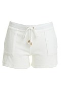 Monochrome basic terry shorts. Elasticated drawstring waistband, patch pockets on the front and snap-flap pockets on back. Logo details at the front drawstring. Short length. Regular fit.