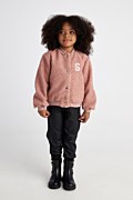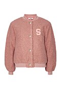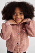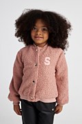 Jacket in a soft boucle weave for girls. Featuring a high collar, long sleeves and elastic ribbed bands in both waist and sleeves. A decorative letter “S” on the chest adds a fashionable touch. Front closure with snap buttons. Fully lined. Model wears size 6, height: 1,15cm.