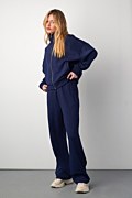 Long-sleeved monochrome soft-touch modal jacket. High collar, side pockets at the front and rib banded cuffs in both waist and sleeves. Front zipper closure. Loose fit. Combine it with the pants 24831021 for a perfect outfit.