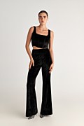 Super soft velour fitted, corset-inspired crop top with straps and a straight neckline. Zipper closure at the back. Slim fit. Combine it with the pants 25831146 for a perfect outfit. Model wears size S: Height: 1,74cm, Bust: 86cm, Waist: 66cm, Hips: 89cm.