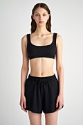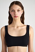 Cotton ribbed bralette in very cropped length with scoop neckline and straps. Slim fit.