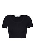 Monochrome fitted elastic cotton rib top in very cropped length with scoop neckline and short sleeves. Model wears size S: Height: 1,76cm, Bust: 85cm, Waist: 61cm, Hips: 91cm.