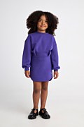 Long-sleeved cotton mini dress for girls with inner soft fleece fabric. Featuring an elastic waistband for a fitted waist style, scoop neckline and ribbed elastic cuffs on the sleeves. Adorned with sparkling heart-shaped strass on the front, adding a touch of glamour to any outfit. Button back closure. Regular fit. A perfect dress for our girls to wear it all day! Model wears size 6, height: 1,15cm.