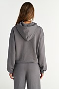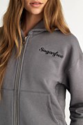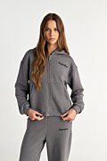 Long sleeved cotton hoodie jacket. Features an embroidered Sugarfree logo on the chest, double hoodie, front kangaroo pockets and elastic ribbed bands in both waist and sleeves. Front zipper closure. Regular fit. Combine it with the pants 25831192 for a perfect look. Suitable from day to night. Model wears size S: Height: 1,75cm, Bust: 79cm, Waist: 60cm, Hips: 90cm.