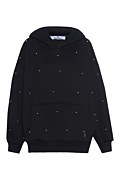 COTTON OVERSIZED HOODED SWEATSHIRT WITH SPARKLING STRASS EMBELLISHMENT
