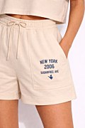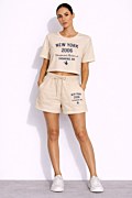 Monochrome cotton shorts in a cropped length, featuring an embroidered design on one leg. Designed with an elasticated drawstring waistband for a firm fit and patch pockets. Regular fit. Combine it with the top 26812076 for a complete look. Suitable from day to night wear. Model wears size S.
