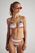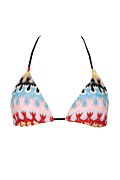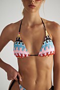 Crocheted look triangle bikini top featuring a repeating multicolor pattern. Light padding with removable pads. Ties at the neck and back. Lining. Combine it with its bikini brief 25802641 for a total look.