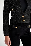 Cropped blazer with sequins. A perfect blend of luxury and uniqueness. Featuring a tailored waist, two patch pockets on the front, one piece collar, shoulder pads and three-quarter length sleeves. Double-breasted closure on the front with golden buttons. Regular fit. Combine it with the pants 23831157 for a perfect outfit.