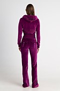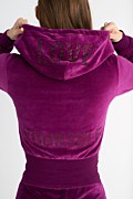 Monochrome cropped velour jacket with a wide elastic waistband. Features a double hood with an adjustable drawstring adorned with colorful strass, front kangaroo pockets, strass embellishments on the back and a zipper closure with an iconic Sugarfree heart puller. Regular fit. Combine it with the pants 25831000 for a perfect style. Model wears size S: Height: 1,77cm, Bust: 83cm, Waist: 62cm, Hips: 89cm.