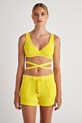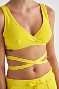 Terry bralette in very cropped length with 'V' neckline and straps. Ties at the back side. Slim fit.