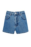 High-waist denim shorts with a five-pockets design and belt loops. Regular fit. Short lenght. Front zip fly and metal top button closure. Model wears size 36: Height: 1,77cm, Bust: 90cm, Waist: 60cm, Hips: 90cm.