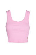 Monochrome elastic cotton ribbed top with scoop neckline and straps. Decorative SF logo on the side. Slim fit. Very cropped length. Suitable top to wear it from day to night.