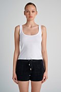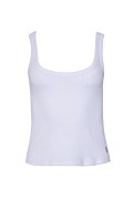 Monochrome sleeveless elastic cotton ribbed top with a scoop neckline. Decorative SF logo on the side. Slim fit. Suitable tank top to wear it from day to night.