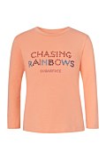 Long-sleeved cotton top for girls with colorful sparkling strass embellishments on the front. Features a scoop neckline and long sleeves. Regular fit. Model wears size 8: Height: 1,30cm.
