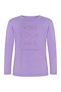 Long-sleeved cotton top for girls with colorful sparkling strass embellishments on the front. Features a scoop neckline and long sleeves. Regular fit.