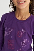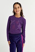 Long-sleeved cotton top for girls with colorful sparkling strass embellishments on the front. Features a scoop neckline and long sleeves. Regular fit. Model wears size 8, height: 1,27cm.