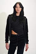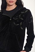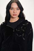 Long sleeved, hooded velour jacket adorned with strass. Patch pockets on the front, double hoodie, strass embellishment at the front side, elastic bands in both waist and sleeves, iconic heart zipper and heart stoppers. Relaxed fit. Suitable for all day! For a perfect outfit, combine it with the pants 19831000. Model wears size S: Height: 1,75cm, Bust: 81cm, Waist: 67cm, Hips: 89cm.