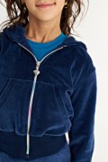 Velour set for girls adorned with sparkling strass. Hoodie jacket with strass embellishment on the back. Features patch pockets on the front, elastic ribbed bands in both waist and sleeves and a bold, eye-catching rainbow zipper closure. Mini skirt in straight-fit with an elastic waistband for a firm fit, embellished with sparkling strass on the back. Regular fit. This set ensures our girls have the perfect outfit every time they wear it! Model wears size 8, height: 1,27cm.