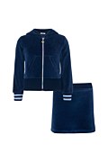 EMBELLISHED VELOUR JACKET/SKIRT SET FOR GIRLS WITH RAINBOW ZIPPER