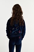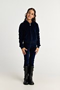 Velour tracksuit set for girls adorned with colorful strass. Hoodie jacket with colorful strass embellishments on the back. Features patch pockets on the front, elastic bands in both waist and sleeves, iconic heart zipper and heart stoppers. Pants in straight leg with an elastic waistband for a firm fit and a back patch pocket with strass embellishments details. Regular fit. This set ensures our girls have the perfect outfit every time they wear it. Whether for casual days, school, or special outings, this velour tracksuit is designed to keep them looking stylish and feeling comfortable all day long. Model wears size 8, height: 1,27cm.