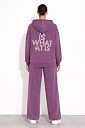Monochrome hooded jacket with an embossed print on the back. Features a hood with an adjustable drawstring, patch pockets, long sleeves and ribbed bands in both waist and sleeves. Front zipper closure. Relaxed, loose fit. Combine it with pants 26811066 and elevate your look!