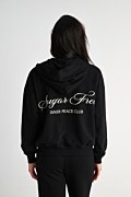 The Basic Sugarfree Cotton Collection encapsules the all-time-classic leisurewear pieces that every wardrobe needs! Soft, comfortable, pure, long sleeve hoodie oversized jacket with patch pockets on the front, contrasting embroidered text detail on the back and elastic ribbed bands in both waist and sleeves. Designed with a long length and loose, oversized fit. Combine it with the pants 25831041 for a perfect look. Suitable from day to night. Model wears size S: Height: 1,78cm, Bust: 83cm, Waist: 60cm, Hips: 91cm.