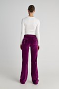 Comfort with style! The basic velour pants in fashionable colors. Low rise and slightly flared fit. Patch pockets on the front, snap-flap pockets on back, long length and banded drawstring waist. Logo details at the front drawstring. Spice up your look by combining the pants with the jacket 25833000. Model wears size S: Height: 1,79cm, Bust: 80cm, Waist: 62cm, Hips: 92cm.