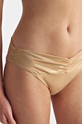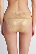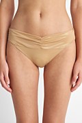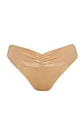 Fashion solids bikini slip with front twist detail. Moderate back coverage.
