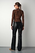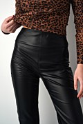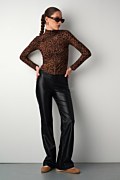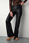 Faux leather high-waisted pants in slim fit. Fitted upper part flatters the silhouette, offering comfort and style. Wide waistband. Fitted and slightly flared fit. Side zip closure. Model wears size S: Height: 1,79cm, Bust: 80cm, Waist: 62cm, Hips: 90cm.