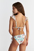 Floral printed triangle bikini top. Features a ruffle detail in matching fabric, light padding with removable cups, and adjustable shoulder straps. Tie fastening at the back. Combine it with bikini bottom 25802391 for a complete look.
