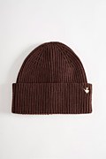 Brown knit beanie decorated with the iconic Sugarfree logo on the side. Features a folded brim, offering both comfort and style on cold winter days.