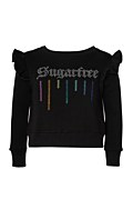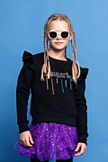 Monochrome cotton long-sleeved sweatshirt in loose fit for girls. Features ruffles on the sleeves and multicolor strass embellishment on the front side, inner soft fleece fabric ensures warmth and coziness and elastic bands in both waist and sleeves. Relaxed, loose fit. Our girls can wear it with the pants 24631053 for a complete and trendy look.