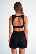 GATHERED RIBBED CROPPED TOP WITH CUT-OUT DETAIL
