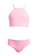 Girls monochrome ribbed swimwear bikini set. Crossed back, adjustable straps and the brief is fully back coverage.