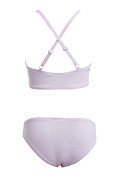 Girls monochrome ribbed swimwear bikini set. Crossed back, adjustable straps and the brief is fully back coverage.