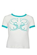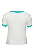 Girls monochrome t-shirt with print at the front, scoop neckline, short sleeves and white stripes on sleeve and neckline creating a trendy look. Regular fit. For perfect style our girls can pair it with shorts 23610133.