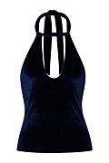 Sleeveless monochrome velour halter-neck cropped top. Featuring a chest cut-out and adjustable neck ties. Slim fit with a cropped length for a chic look.