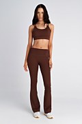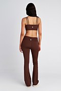 Monochrome high-waisted flared sports leggings/pants. Features a wide banded waist for a firm fit and iconic heat-sealed Sugarfree logo at the back. Combine it with the sports bra 25868038 for a perfect look. Model wears size S: Height: 1,79cm, Bust: 80cm, Waist: 62cm, Hips: 92cm.