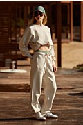 High waisted cotton pants with side pockets and elastic cuff hems in a long length. Printed sweatshirt fabric, elastic waistband for a firm fit, inner soft fleece fabric, patch pocket at the back side. Loose fit. Combine it with the sweatshirt 24832250 for a perfect look. Suitable to wear all day and night. Model wears size S: Height: 1,76cm, Bust: 85cm, Waist: 61cm, Hips: 91cm.