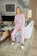 High waisted cotton pants with side pockets and elastic cuff hems in a long length. Printed sweatshirt fabric, elastic waistband for a firm fit, inner soft fleece fabric, patch pocket at the back side. Loose fit. Combine it with the sweatshirt 24832250 for a perfect look. Suitable to wear all day and night. Model wears size S: Height: 1,76cm, Bust: 85cm, Waist: 61cm, Hips: 91cm.