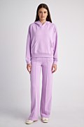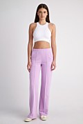 High waisted monochrome cotton pants in a straight leg. Side pockets, band in the waist for a firm fit, a print on one leg and front outer seam. Combines perfectly with the sweatshirt 24812064 for a perfect look. Model wears size S: Height: 1,79cm, Bust: 84cm, Waist: 61cm, Hips: 91cm.