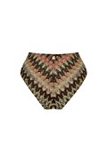 High waisted crochet bikini bottom with a repeating geometric pattern. Lining. Moderate back coverage. Combine it with its bikini top 26801038 for a total look.