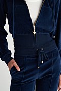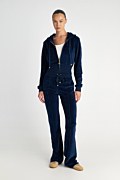 High-waisted velour pants with front decorative outer seam in flared style. Side pockets at the front and a waistband with a drawstring for a firm fit. Logo details at the front drawstring. Relaxed fit. Combine it with the cropped jacket 25833003 and you will impress with your perfect look. Suitable from day to night. Model wears size S: Height: 1,78cm, Bust: 83cm, Waist: 60cm, Hips: 91cm.