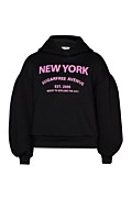 Hooded, long-sleeved cotton sweatshirt in loose fit for girls. Strass embellishment on the front and elastic bands in both waist and sleeves. Relaxed, loose fit. Model wears size 8: Height: 1,27cm.