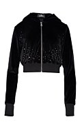 HOODED VELOUR CROPPED JACKET WITH STRASS EMBELLISHMENT